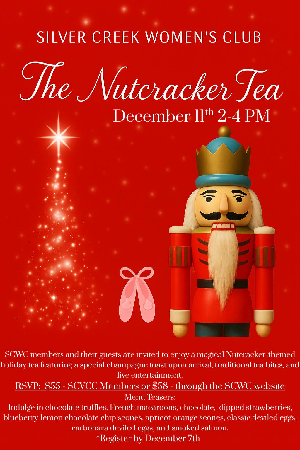 SCWC members and their guests are invited to enjoy a magical Nutcracker-themed holiday tea featuring a specially campagne toast upon arrival, traditional tea bites, and live entertainment.